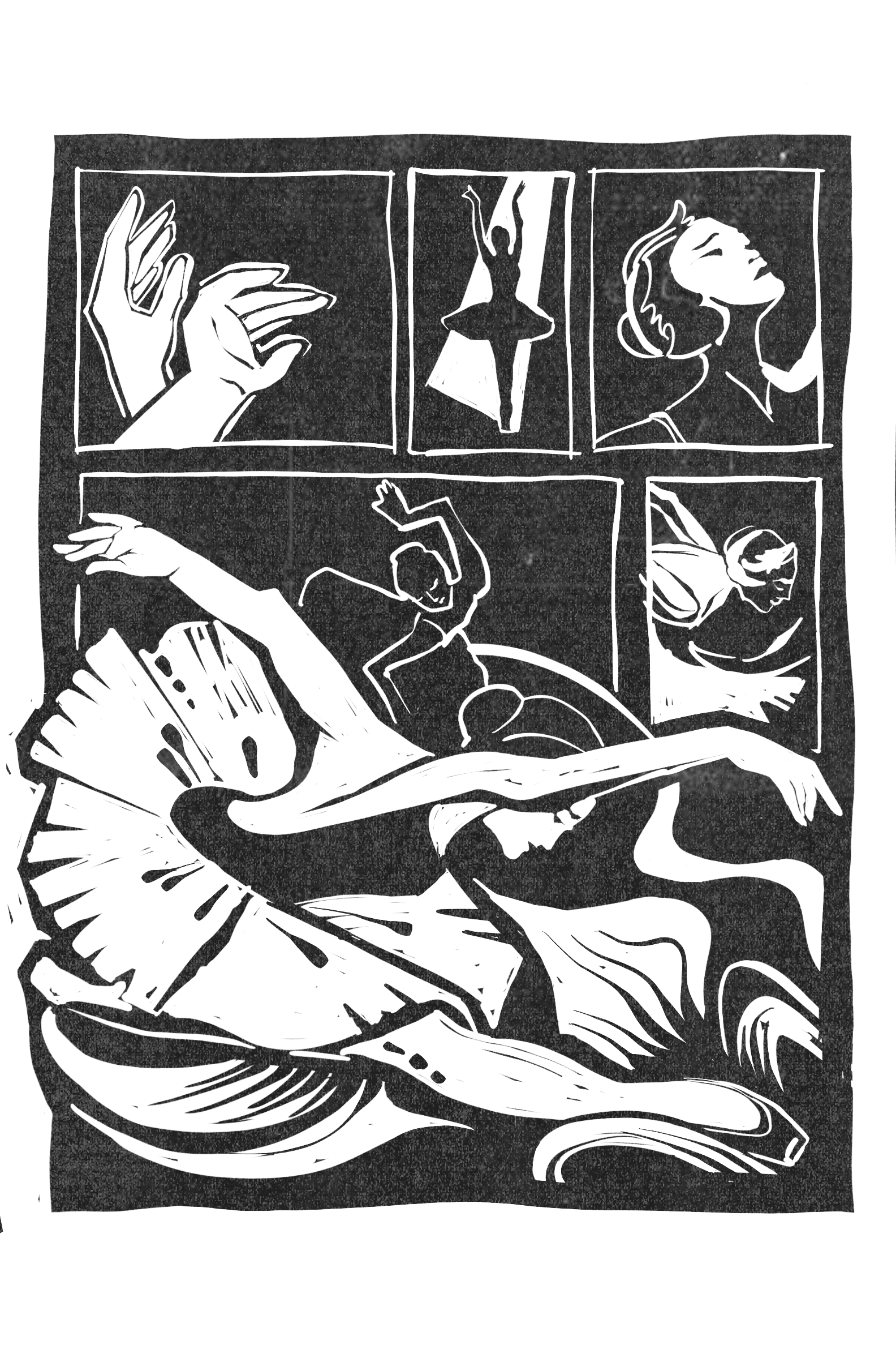 A music box inspired by The Dying Swan by Camille Saint-Saens and linocut artwork.